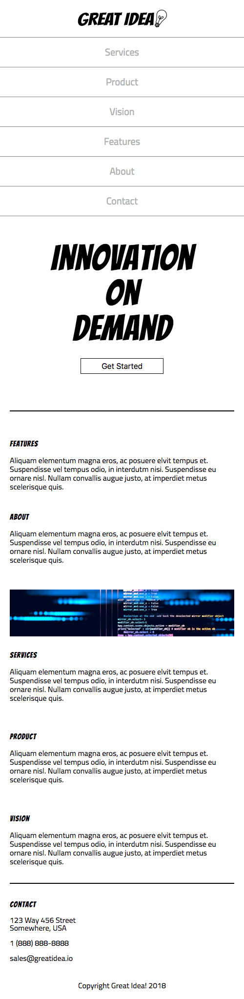 A responsive design Lambda School project in which I created an adaptive version of the "Grea Idea" design by working through design mock ups for desktop, tablet, and mobile devices.
